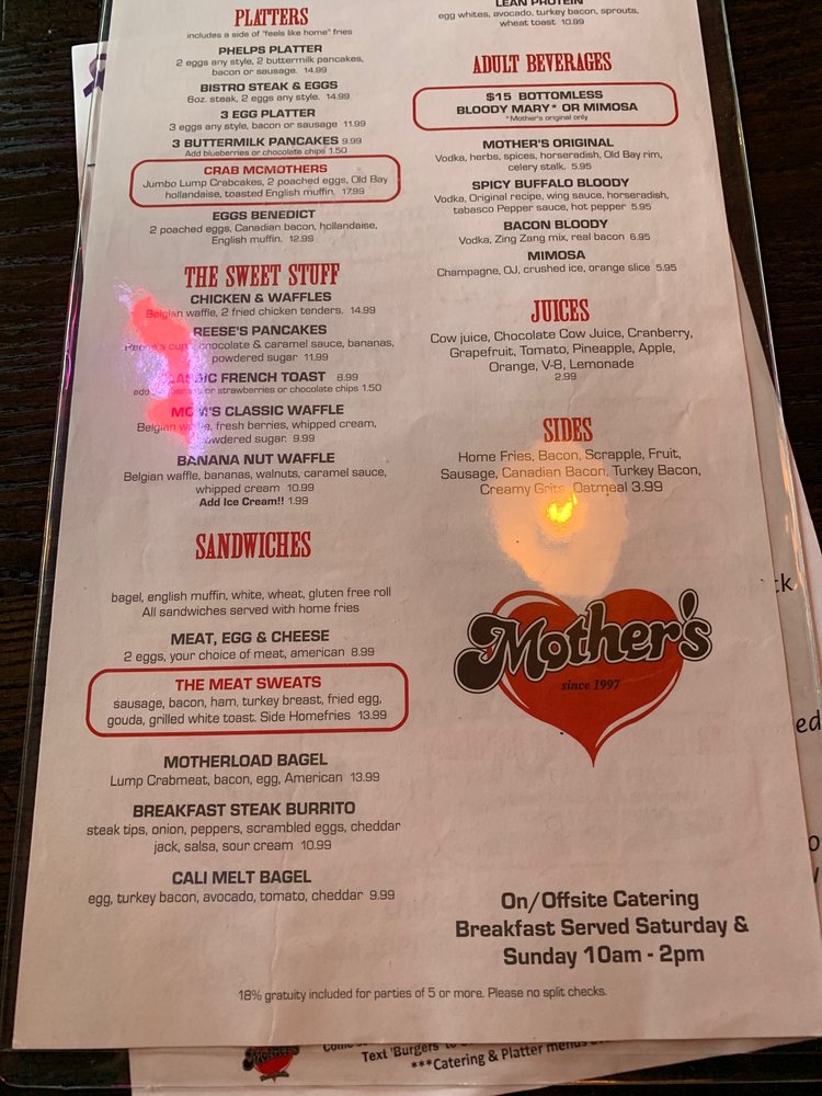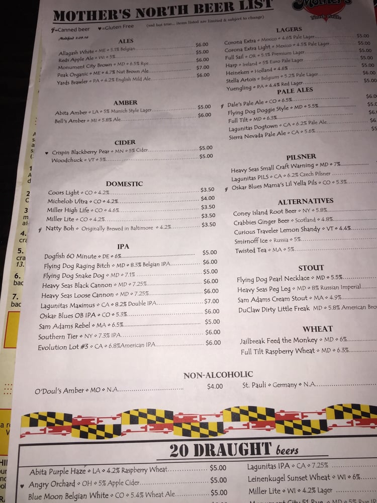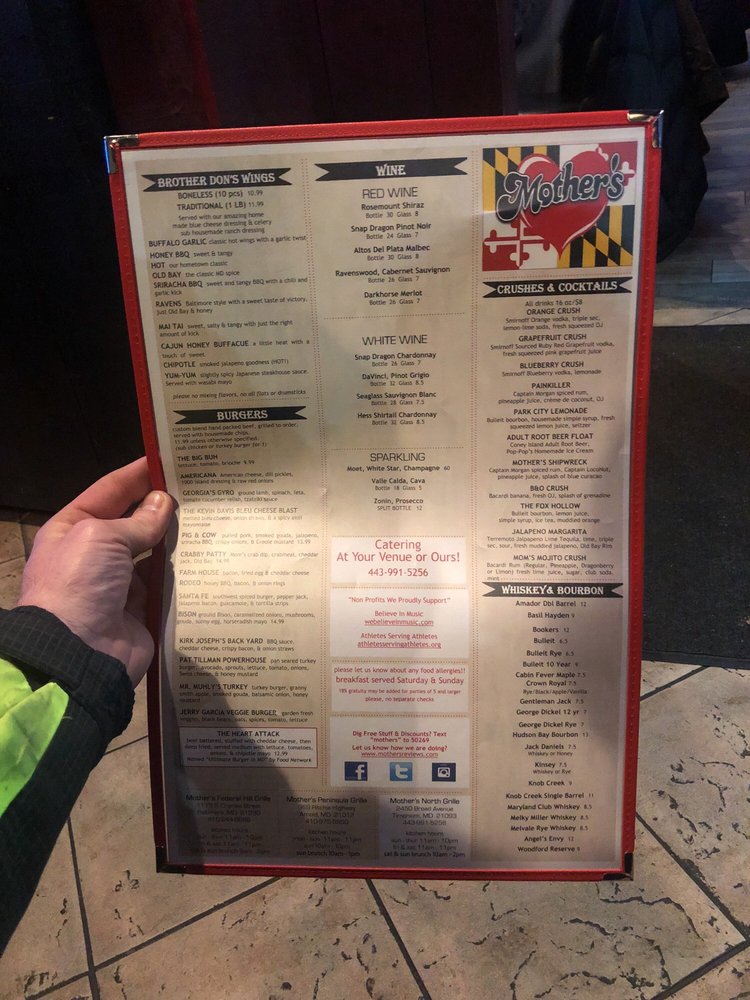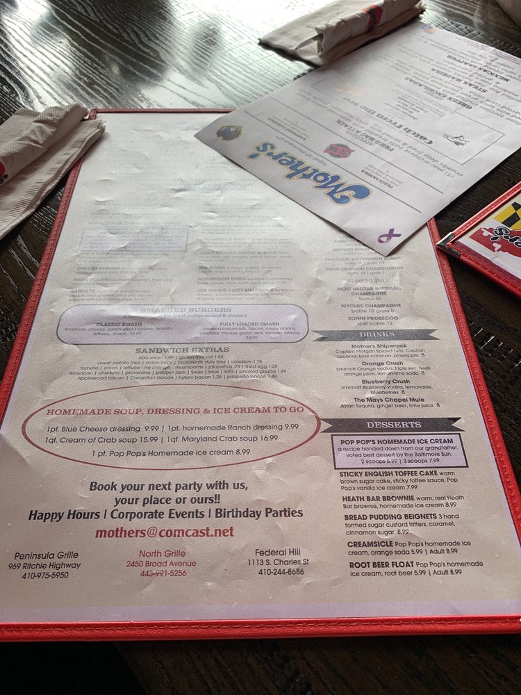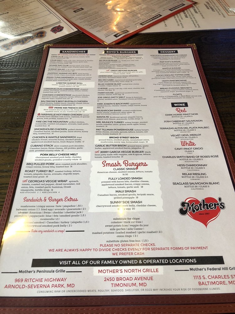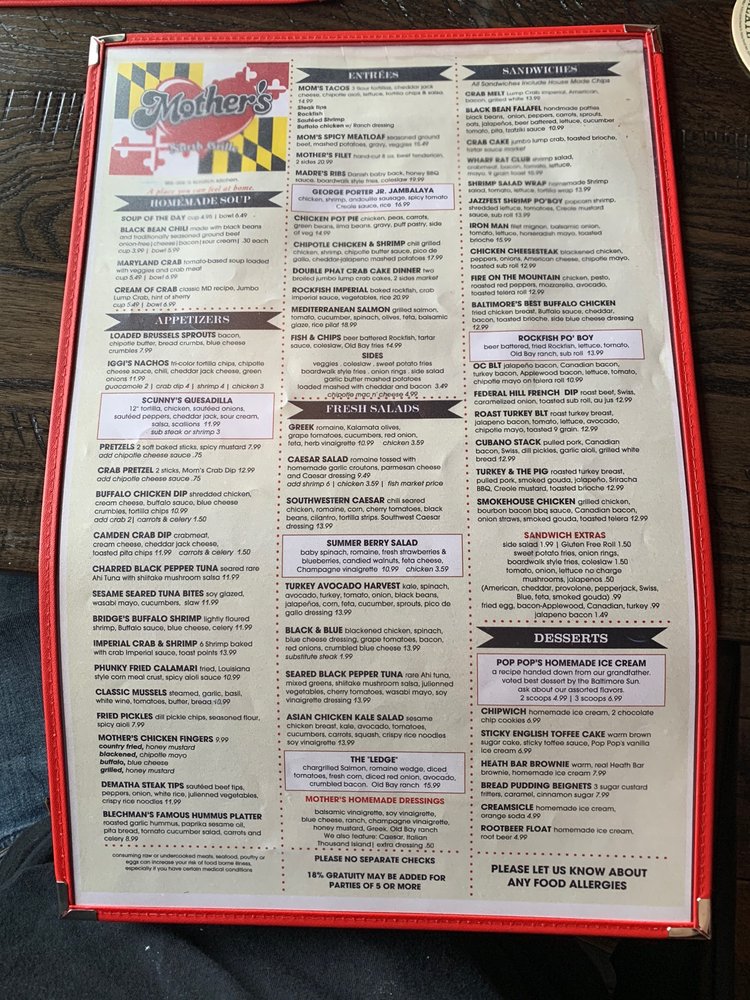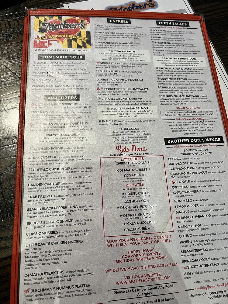 In the bustling world of sports bars, Mother's North Grille stands out as a gem in Lutherville-Timonium, MD. This American-style restaurant offers a variety of appetizers, from classic Basket Fries to the more adventurous Blechman's Hummus Platter. Their soups, like the Cream Of Crab and Black Bean Chili, are perfect for warming up on a chilly evening. Mother's North Grille also caters to various dietary preferences with many vegetarian options available. With unique features like heated outdoor seating and a full bar, this establishment is ideal for a casual night out with friends or family. Whether it's Happy Hour on Tuesdays or game night on Fridays, Mother's North Grille promises a memorable dining experience filled with great food and lively atmosphere.